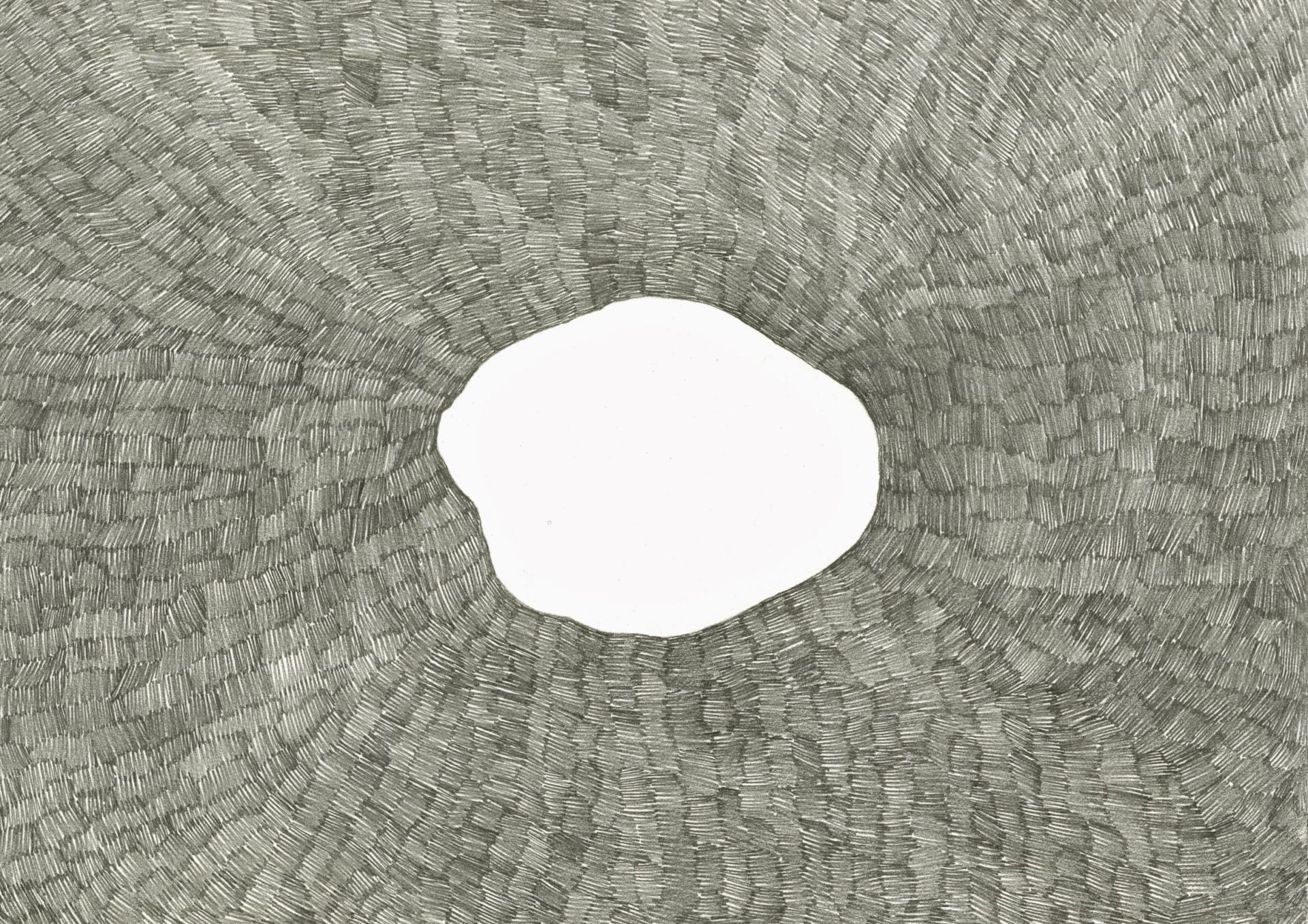 - I also see Vija Celmins’ influence in these pieces, albeit a little more tenuously. There is a certain allover interaction with the surface of the image that is important to Celmins that I feel is present here in the mark-making covering the whole space. The piece with a drawn edge links a little more explicitly to Celmins as the edge is something important to her, something that she likes to have on display to highlight the status of the artwork as its own object, not simply a reproduction of an image. In my piece I consider the edge as perhaps more of a direct referent to this idea of casting, it becomes the edge of this 2D mold. It is an interesting device in and of itself but I think the piece without a drawn edge is perhaps more successful as the importance is placed more wholly on the central void, which is the general aim of the drawings.