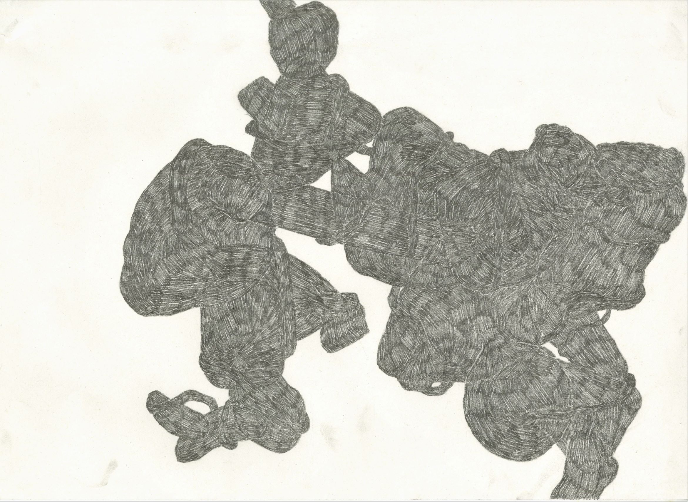 These drawings also lead on from my previous ‘drawing presence’ pieces, with these try to use the forms’ ambiguity to start to blur the physical boundaries of objects, challenging how we tend to view the material world in discrete quanta and building uncertainty over the identity of specific objects or materials.